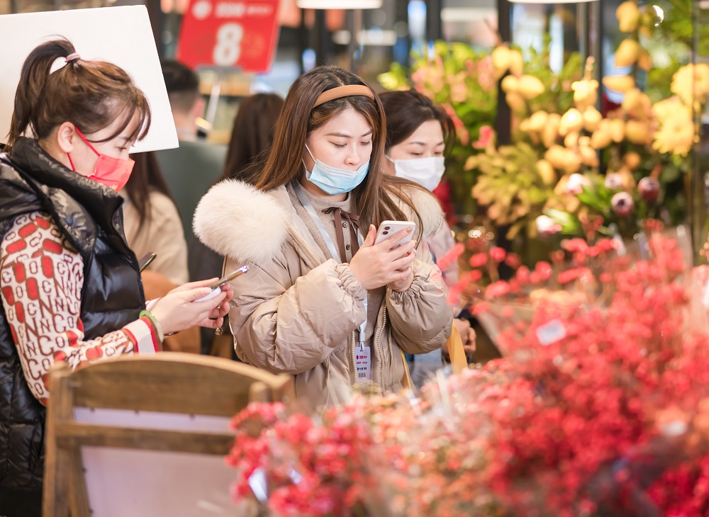 新紫竹與花鄉的花藝師在為大家帶來年宵花打樣表演)