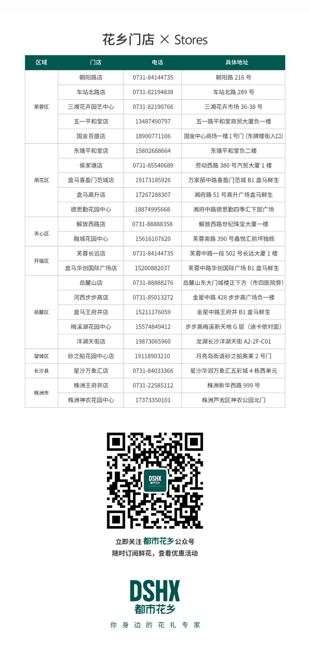 花鄉門店 芙蓉區 雨花區 天心區 開福區 岳麓區 望城區 長沙縣 株洲市